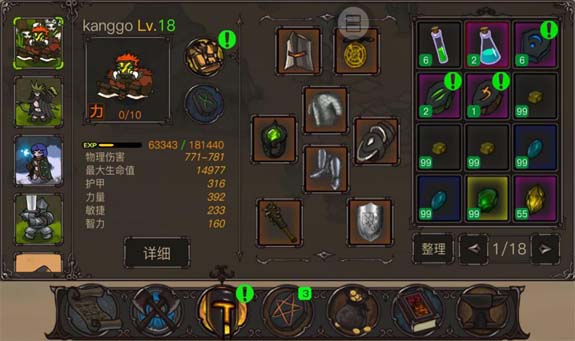 值得注意的是,游戏中的背包空间有限,冗余的无用装备应及时分解,以随机生成经验药水、宝石、镶嵌石等诸多珍贵物品;游戏中的金币获取虽易,但消耗亦大,需谨慎储存以备不时之需。装备可升星,每件装备可升至5星,升星后的装备属性可大幅提升,妈妈再也不用担心我的闯关了……。