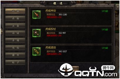在打造界面,通过消耗金刚石可打造神装,金刚石可在商城中购买。