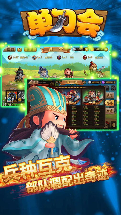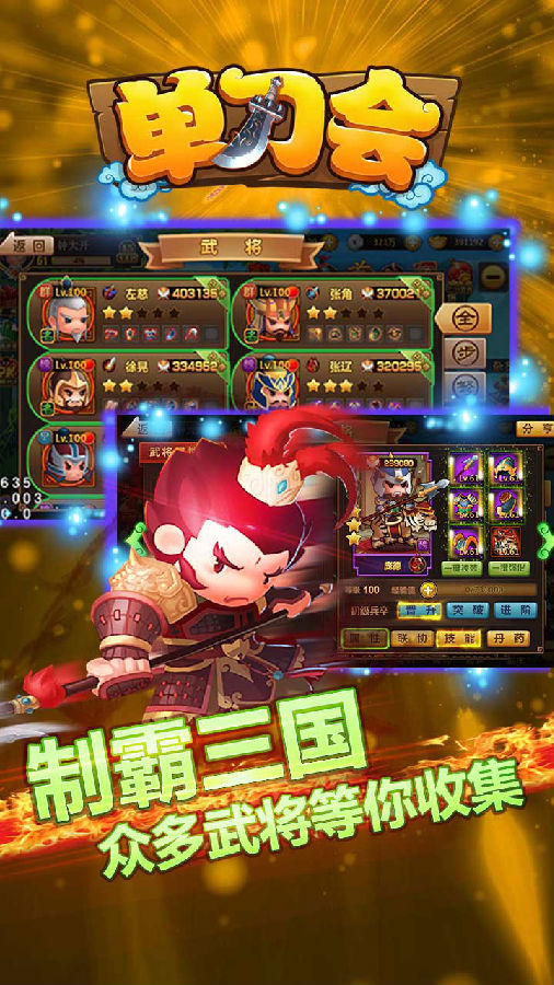 《单刀会》现已开启测试! 登录即赠神将马超、张辽、司马懿,新服更有VIP及丰厚元宝相送,免费领取成长基金!众多福利,期待与你一同踏上的征途!羁绊无双,武将组合纵横四方!妙计百出,阵型与兵种相生相克!分屏作战,双军对垒,震撼视界!兵临城下,群雄会盟,国战成名!尽情体验极致智谋的三国战斗,满屏多兵种的军团大战即刻上演!
