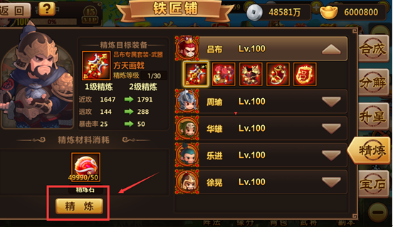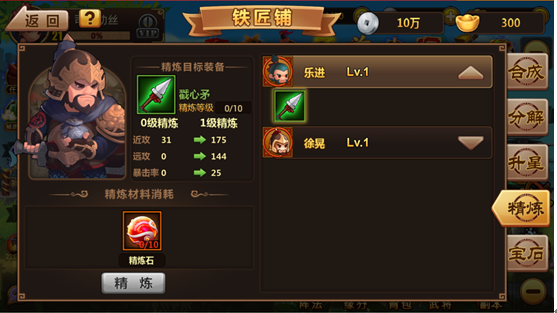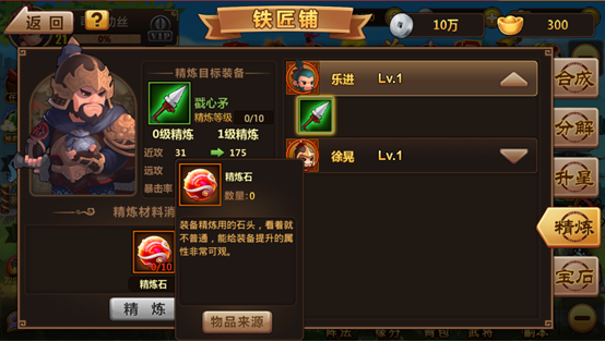 【装备精炼】乃《单刀会》中提升武将属性的重要系统之一。