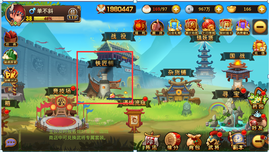 此功能于主公达到15级时在铁匠铺开启,如下图所示: