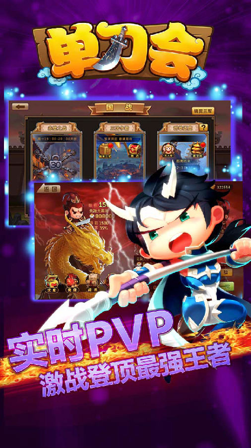 《单刀会》盛大开测! 登录即赠神将马超、张辽、司马懿,新服更有VIP特权与海量元宝,尽享免费成长基金!诸多福利,诚邀你共同驰骋于!羁绊无双,武将组合横扫千军!奇谋百出,阵型与兵种相生相克!分屏作战,两军对垒,震撼眼球!兵临城下,群雄汇聚,国战成名!亲身体验极致智谋的三国对抗,震撼的多兵种军团大战即刻上演!