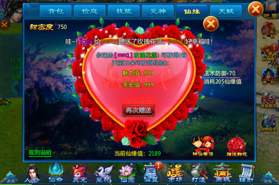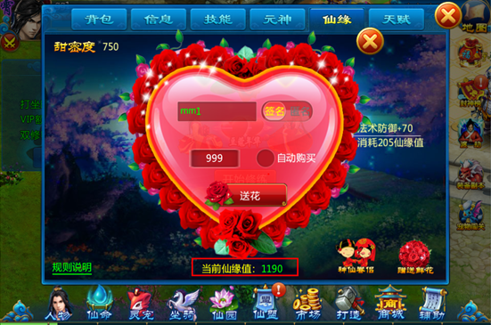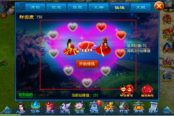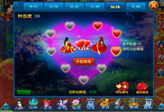 4) 仙缘修炼是单方面的,对方的修炼状况不影响自身(共同增加仙缘值,各自消耗仙缘值)。