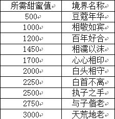 3) 甜蜜度达到一定数值可激发境界效果,获得属性加成,目前共设有10个境界等级。