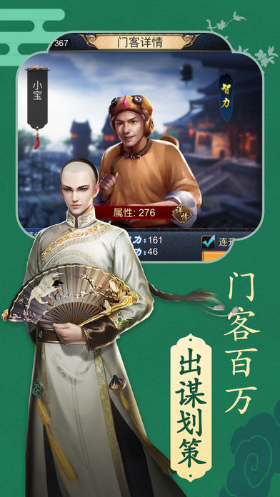 门客养成,韦小宝、纪晓岚、和珅;官场争斗,夺取皇位,唯有您的宏图伟略方能成就辉煌。