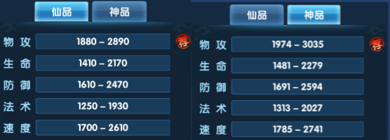 神品伙伴的资质范围显著高于仙品,易于洗出优异资质的属性,具体资质范围可在图鉴中查阅。