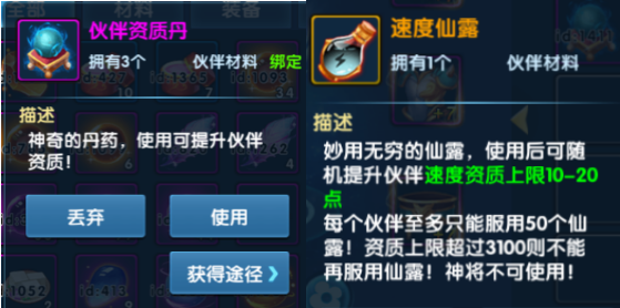 当伙伴洗髓达到良好资质上限时,当前资质数值虽不高亦无妨,给予伙伴资质丹后可突破上限,属性提升亦会显著。