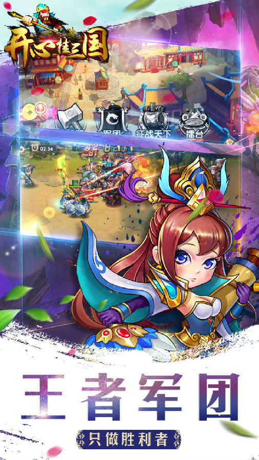 《开心挂三国》是一款划时代的Q版类手机游戏!在这里,你可以创建属于自己的角色,享受自动打怪和自动升级的乐趣!精美的游戏画面、炫酷的人物造型、华丽的技能特效、高属性的神器装备、刺激的PVP掠夺地图,以及恢弘的军团大战,尽情带你领略全新的三国魅力。