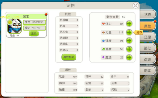 宠物每升一级,除了系统自动增加的属性外,还将获得一点自由属性点,玩家可根据个人喜好自由分配属性点,但请注意,属性点分配后不可返回,务必谨慎选择!如不知如何抉择,可参考我们推荐的属性。