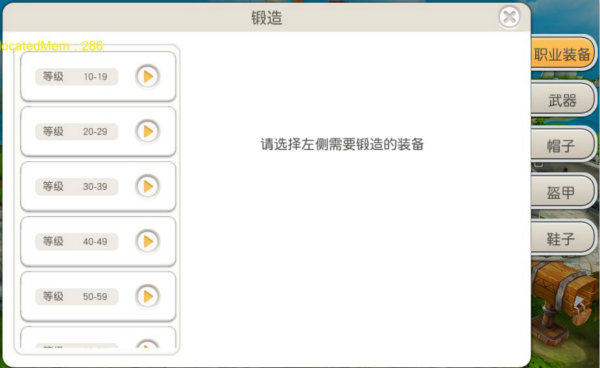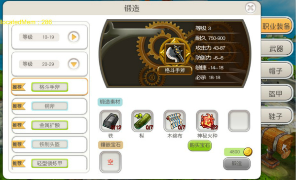 通过右侧分页,玩家可便捷地选择:根据自身职业打造专属装备,或是铸造其他职业的装备(玩家能够装备本职业的高等级装备,也可以选择其他职业的低等级装备,高玩们可根据所需属性要求自由选择装备!)