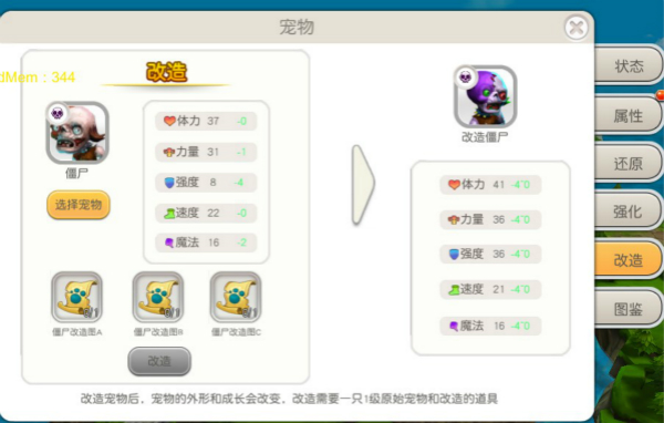 宠物还原可将宠物还原为一级,并重置所有成长档位,成长档位越高,宠物系统所增加的属性亦越强。