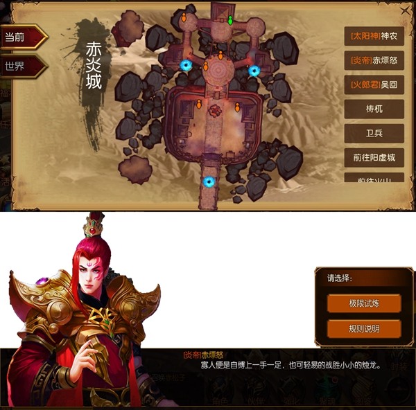极限试炼的入口并不容易寻得,活动入口位于赤炎城的赤熛怒处,玩家可通过日常任务进入极限试炼。