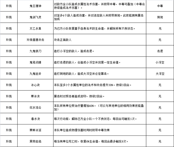 角色定位:治疗、中毒、增益角色,擅长治疗与中毒效果。适合与水族角色搭配使用。