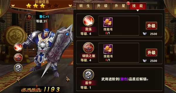 钢铁之躯:此期间曹仁无法攻击,但可释放震荡。