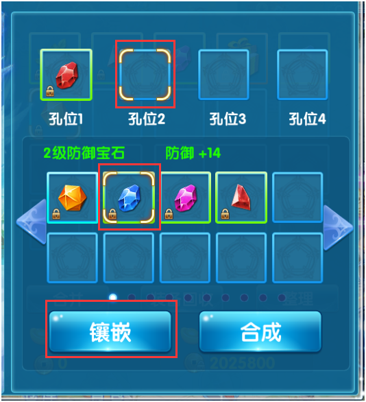 如果对应部位的宝石凹槽尚未镶嵌宝石,直接点击凹槽,选择宝石并点击镶嵌即可。