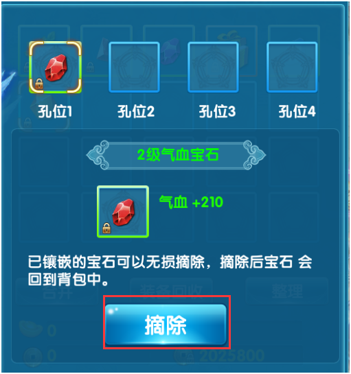 若对应部位的宝石凹槽已镶嵌宝石,则需点击凹槽,选择镶嵌宝石并点击摘除,随后重复第一步即可。