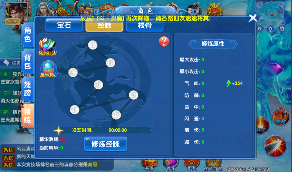 经脉系统同样是提升角色属性的重要机制。