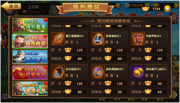 杂货铺和限购商城会出现高级装备碎片,玩家可使用元宝购买,获取后可进入寻宝玩法,抢夺他人的碎片进行。