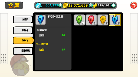 防御宝石可谓是万用增益宝石,任何类型和战位的宠物精灵均可根据自身战队情况自由搭配。其分为五种状态:碎裂防御宝石、瑕疵防御宝石、普通防御宝石、无暇防御宝石与完美防御宝石。初期形态提供10点防御属性,中级形态提供15点防御属性,高级形态提供20点防御属性,终极形态提供30点防御属性,而究极形态则提供35点防御属性。