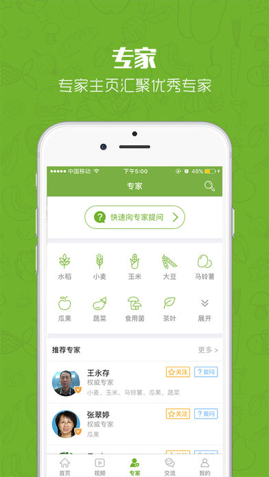农管家APP汇聚了国内最丰富的种植和养殖相关视频课程,涵盖了南北方多样的农作物,以及农药、种子和施肥技术的指导。权威的农艺专家和一线专业人士在线为您解答疑难,让用户能够直接进行在线学习,建立自己的交流圈子,及时了解国内最新的相关资讯。