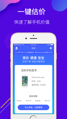 机米app苹果版是一款非常实用的苹果软件,用户可以将自己不再使用的苹果手机放到平台上,平台支持先放款后收货,让您更加放心。当天提交即当天放款,安全回收更有保障,欢迎各位感兴趣的朋友们下载使用。