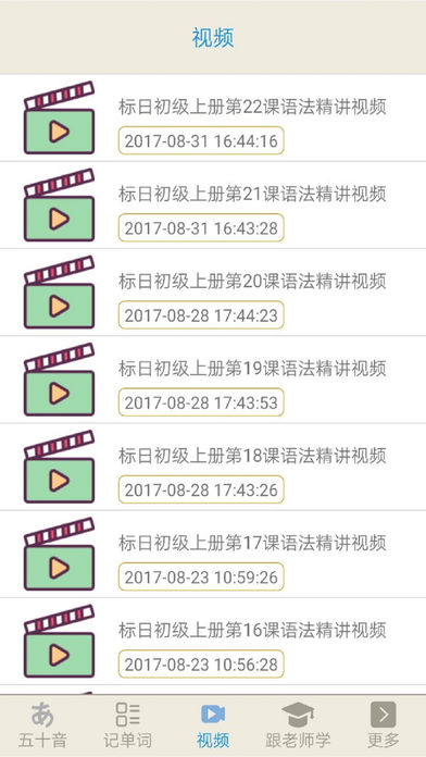 系统化、规范化地学习五十音的发音与书写,以便为更深层次的日语学习打下坚实的基础。同时,教师为每个假名录制了详细的讲课视频及记忆法。