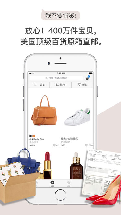 全面同步美国商家的商品,全球最新款的彩妆、护肤品、包包与潮鞋一应俱全,尽在此平台。