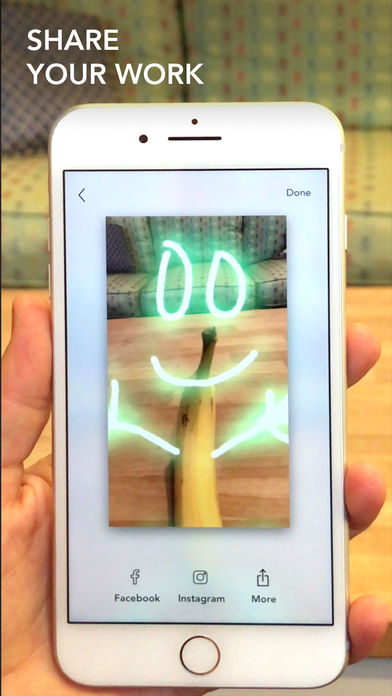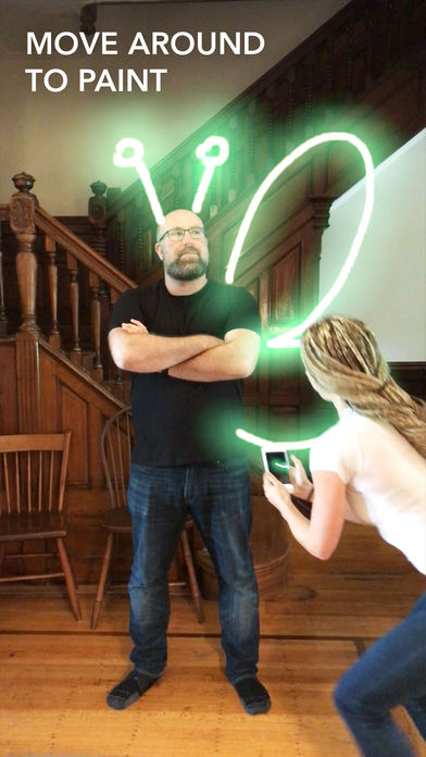 在现实世界中,以3D光影描绘出您的艺术作品!借助LightSpace,为朋友绘制翅膀,在您的客厅中施展烟花般的创意,书写情书,甚至画上面孔和香蕉。