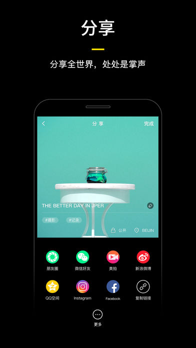 支持将便捷分享至微信、朋友圈、微博、Instagram、今日头条等全球主流社交平台,让您轻松一键同步发布自己的短片佳作。