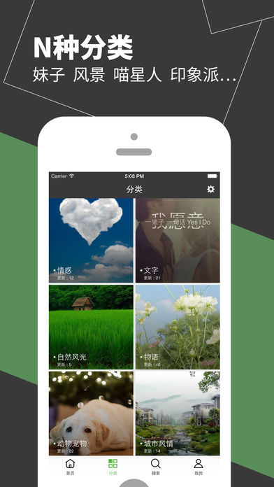 2. 多种分类,情感、风景、、文字风......应有尽有;