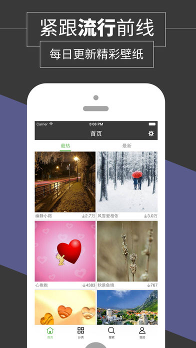 1. 紧随潮流,每日更新精彩壁纸,涵盖最全、最新的美图主题应用;