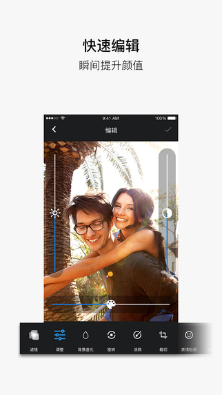 拍摄完美图后,极相机将引导您通过的操作来美化图片。您可以选择裁剪、旋转、应用滤镜,调整图像参数,甚至尽情涂鸦。编辑完成后,不妨将作品分享至朋友圈、微博、QQ空间等平台,与好友一同欣赏。