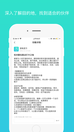 游兔APP是旅行爱好者的“家”,也是所有渴望旅行、准备旅行和正在旅行的用户的主题圈。在这里,您可以结识更多志同道合的旅友,向心灵相契的那位倾诉心声;在此,您可以与情投意合的同行者约伴共行,也能够找到驴友为您解决旅途中的烦恼与困扰。