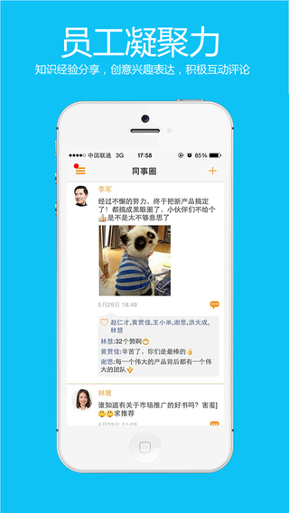 11. 同事圈:企业内部分享的圈子,潮流知识与工作秀。