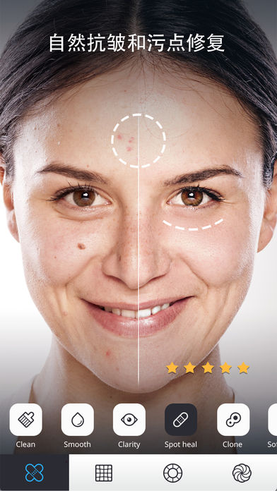 Relook的修复工具智能选择与肌肤最匹配的替代,快速消除斑点与痘痘。相比传统修补应用程序,更加、高效。