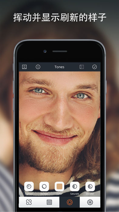 柔和肤色、去除红晕、亮化眼睛颜色,提升亮度并调节光影。Relook高级的柔和色调调节工具助您在最佳光照条件下展现动人面庞。