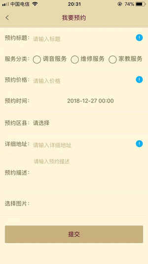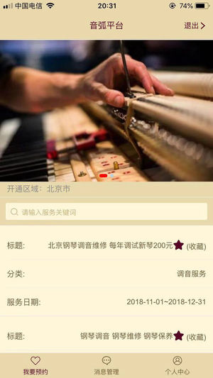 2. 普通用户登录后,便可在首页预约调音服务,完成预约后,可在个人中心查看我的预约内容。