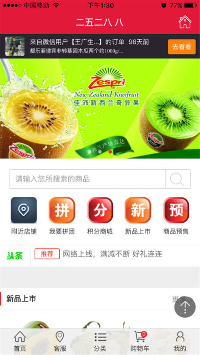 【新用户专享福利】线上购买门店自提更享优惠,询问店员‘通关’口令,领取新人专属水果大礼包!