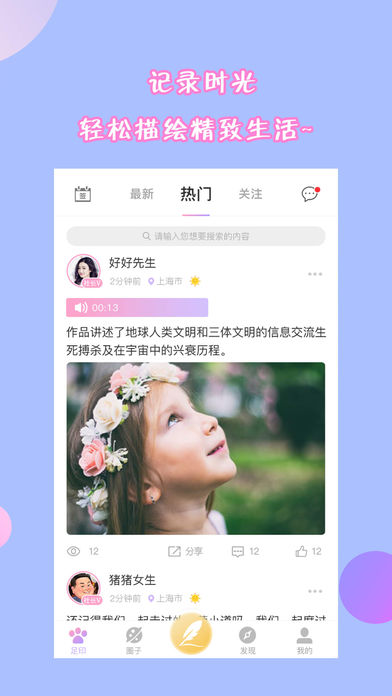 浅言s版,记录你生活中的点滴美好。热爱手帐的朋友们千万不要错过,这是你掌中的平台,陪伴你每一个日子,感兴趣的快来下载吧。