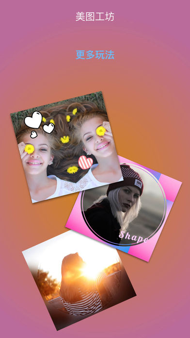 * 美图工坊拥有四种强大功能,包括方形、形状、和镜像,您可以在此找到各种效果,为您的美图变换多样风格。