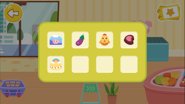 【清单购物】小朋友需要根据购物清单购买所需商品,培养其识别形状、辨别颜色的能力,同时锻炼耐性。