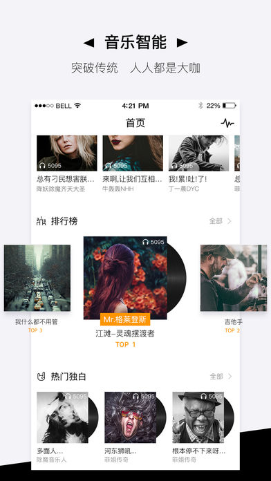 -排行榜:平台内所有歌曲将依据火爆程度进行排名,想登上榜单吗?快来加入吧!