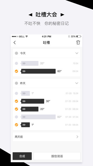 -吐槽歌曲合成:随时随地记录心中所想,畅所欲言,更可将这些倾诉编织成一曲音乐,神秘吐槽等待你来体验。