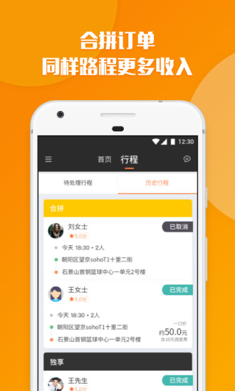 【合拼订单,收益更多】系统智能打包顺路合拼订单进行推送,优先抢夺附加订单。每单高价,再也无需担心空驶费用。