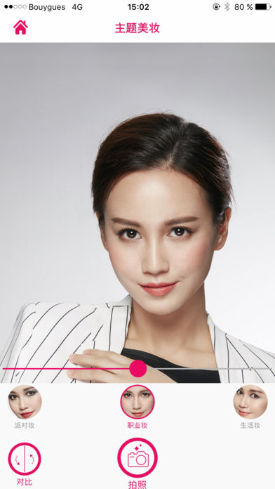 派对妆、生活妆、职业妆等多种主题妆容,实时预览上妆效果,强大的面部识别技术完美契合你的表情,满足不同场合的拍照需求。