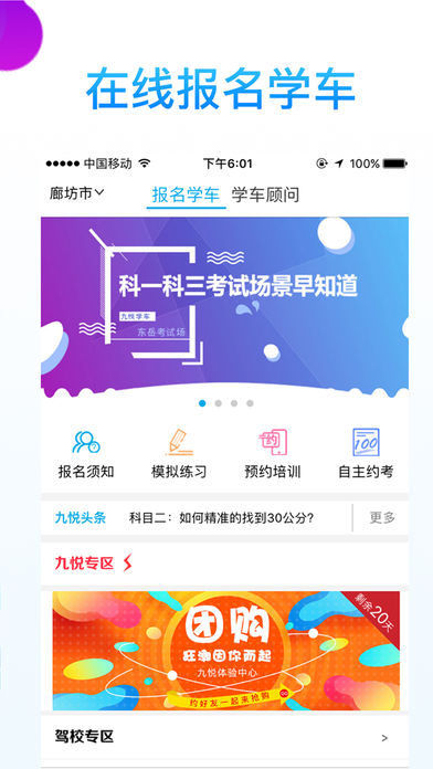 学车,是最具特色的互联网驾照学习平台,专为学员提供专业的学车服务,涵盖报名至领取驾照的全流程。考驾照必备的应用软件,规范学车流程,操作简便,是驾照考试的首选之作!内含全真试题,使用九悦学车考驾照,更为权威、便捷!