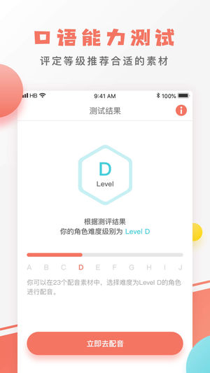 基于专业的口语能力评测,为孩子们推荐适宜难度的配音素材,迅速匹配最佳角色。