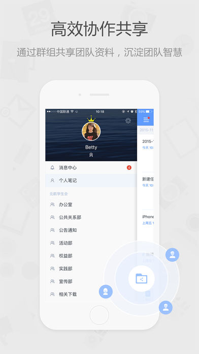 与同事共同记录工作笔记,通过笔记沟通和分享知识,团队成员无论身处何地、使用何种设备,均可随时查看群组内容。