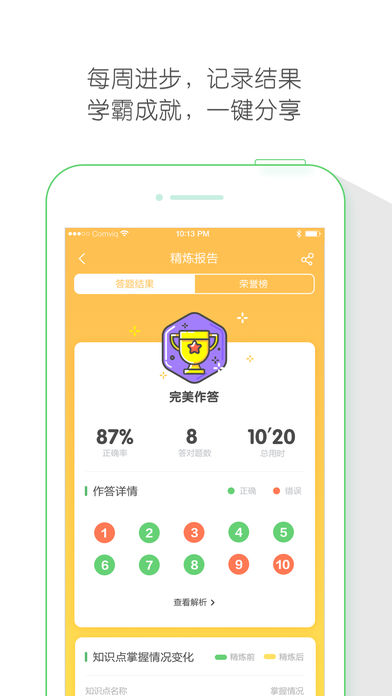 3,学科学习动态一手掌握:及时了解学习成绩的走势,更深入地认识自己当前的学习状态,包括每个知识点的掌握情况。