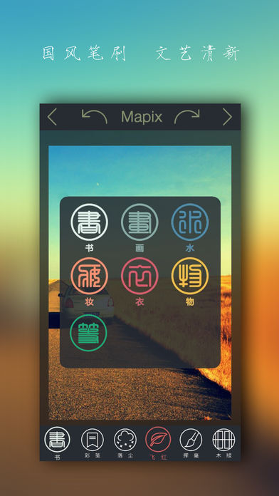 Mapix 版正式上线,互趣相继推出的、胡涂、近墨者黑等一系列照片处理工具,唯独这款Mapix将国学、绘画与诗词融为一体,成为独树一帜的照片编辑器。渴望体验的朋友们,快来下载吧!